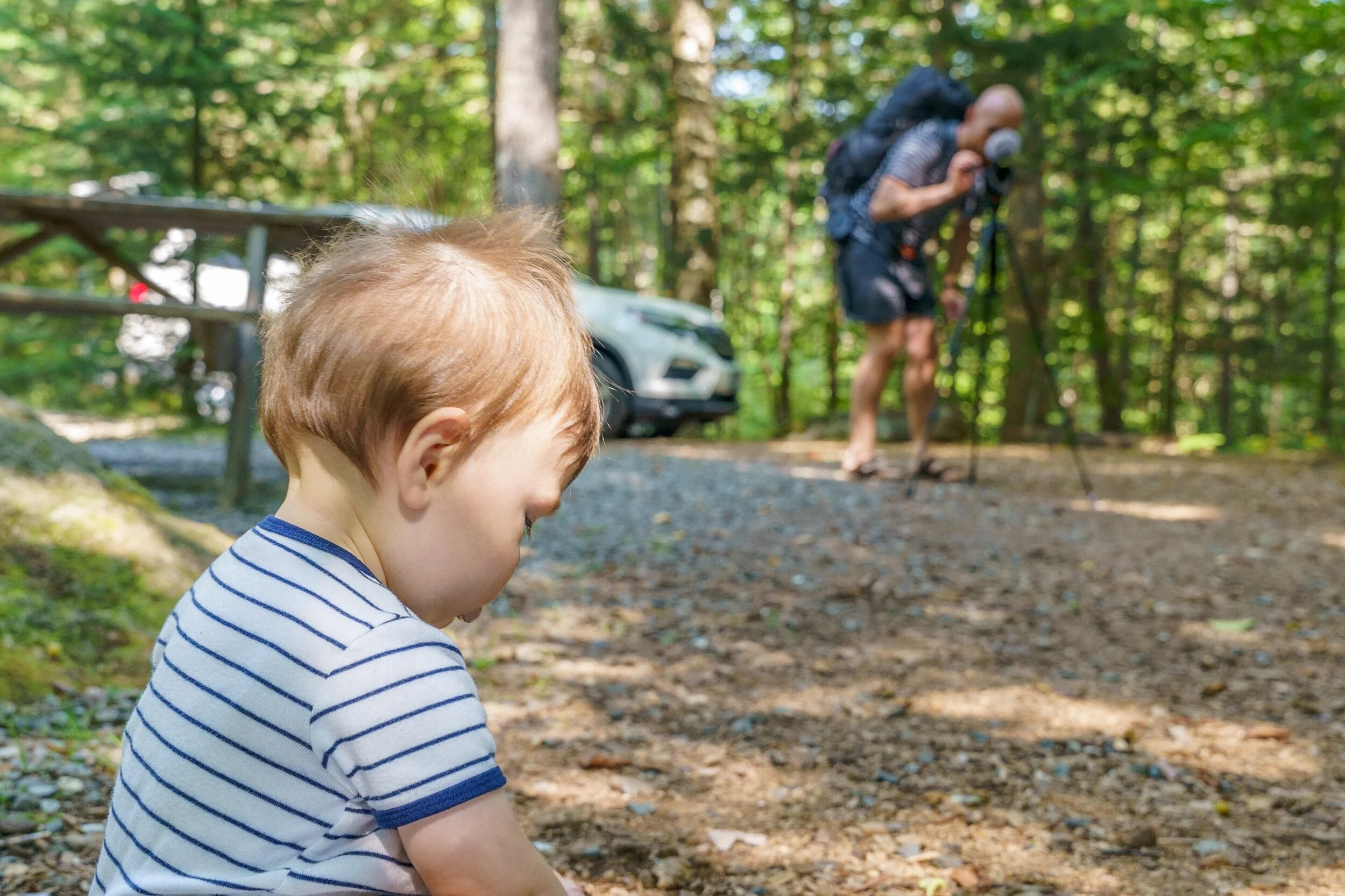 We were enchanted with the campsite. However, we quickly learned that bringing a baby camping is a lot of work. There were far more mosquitos than we would expect at the end of August, and my full time job was keeping them off of River. My part-time job was making sure River didn’t eat any wood chips, rocks, dirt, or whatever else he found on the ground. Bud had to undertake all camp set up all by himself. River was in his element, though. He loves to crawl in dirt, pull up the grass, crunch up the leaves. While he played, noisy red squirrels chased each other up and down the trees around us.