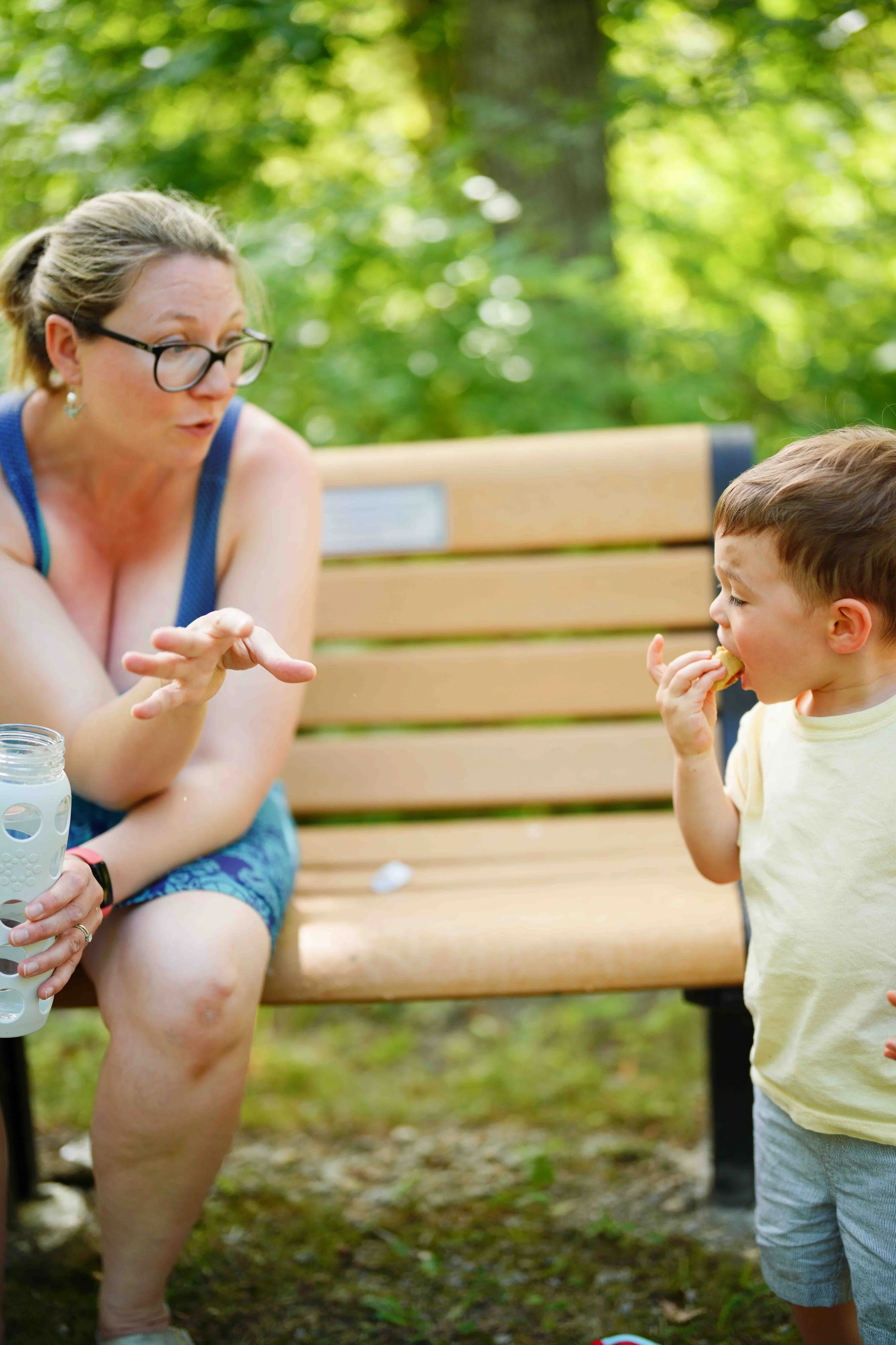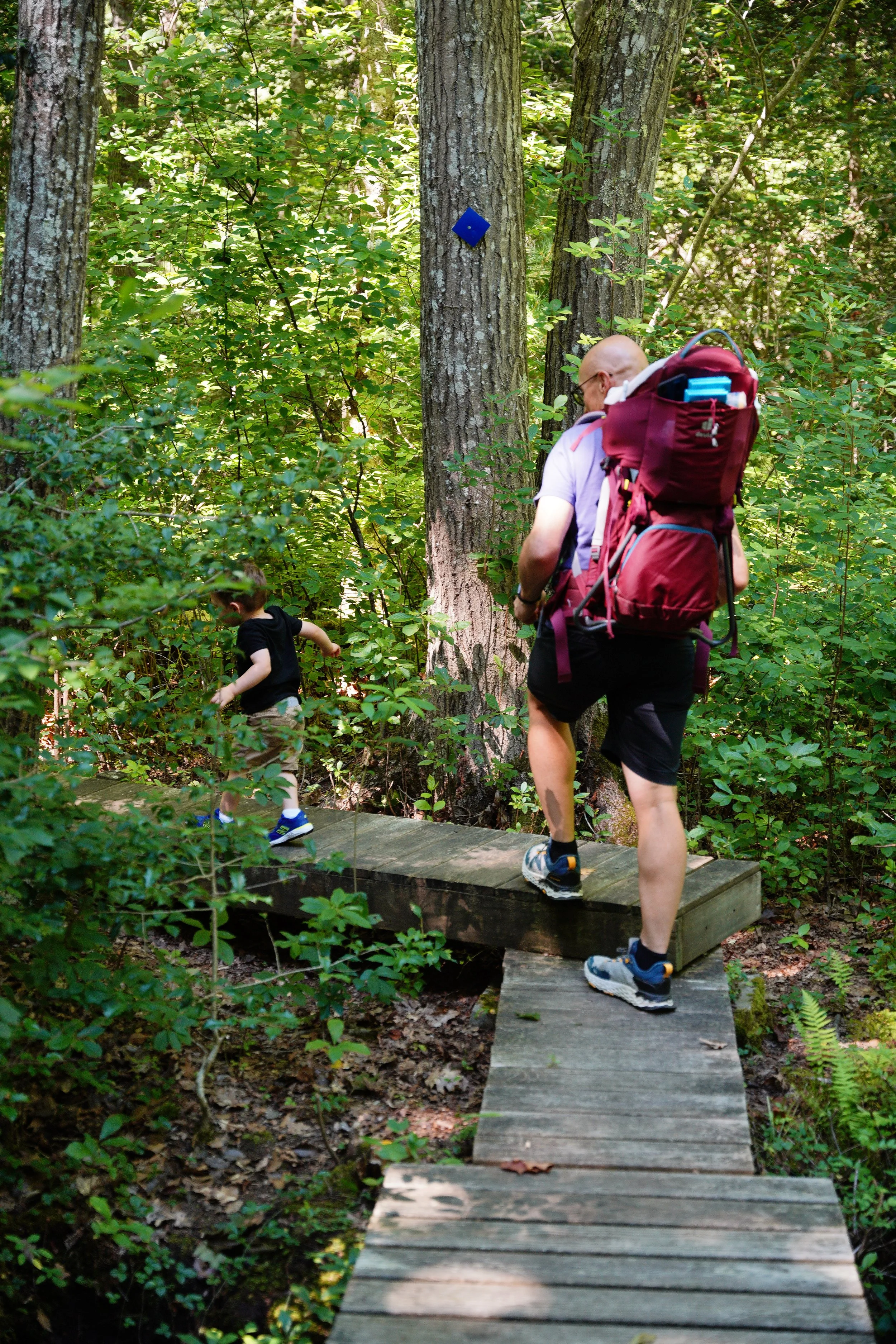 Today, Bud and I were reminiscing about our anniversaries of years past. We have been lucky enough to have spent our anniversary in some pretty cool places: on the Long Trail in Vermont, at a resort with my Dad in New Mexico, recovering from our first hike of the Grand Canyon in Sedona, in Bud’s home town in Corvallis, OR. But this, our 12th, wedding anniversary was extra special. We took our family of four (I can’t get enough of that phrase- “family of four”!!) on Elle’s first hike. Although she slept through her first hike (she wasn’t as excited as we were, apparently), River stretched his hiker legs venturing bravely down the trail ahead of us, finding interesting sticks along the way, and then enjoying a well-deserved post-hike fruit pouch. Although we’ve spent our past anniversaries in some beautiful far-off places, we just celebrated one of our best just ten minutes up the road from our apartment.