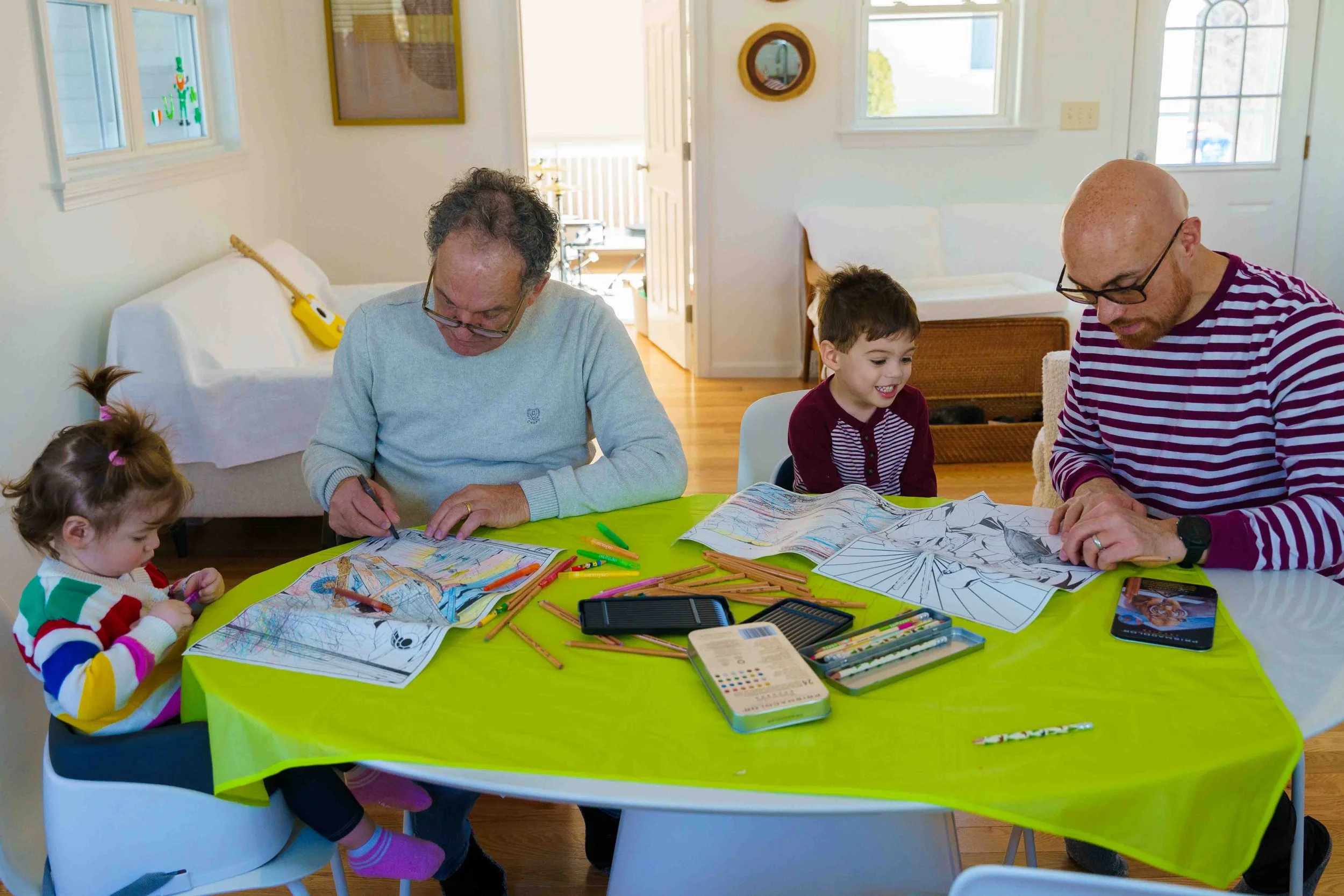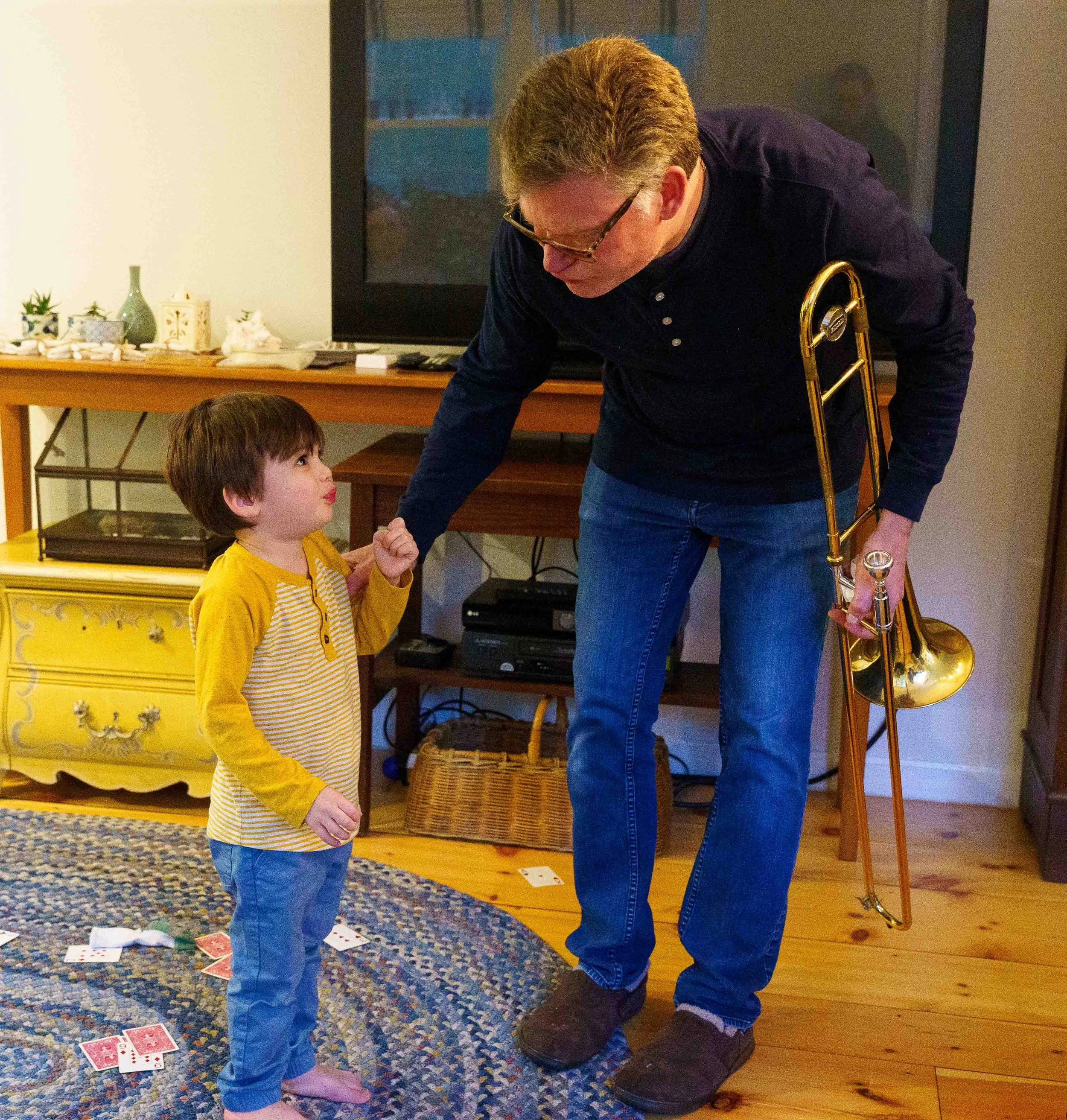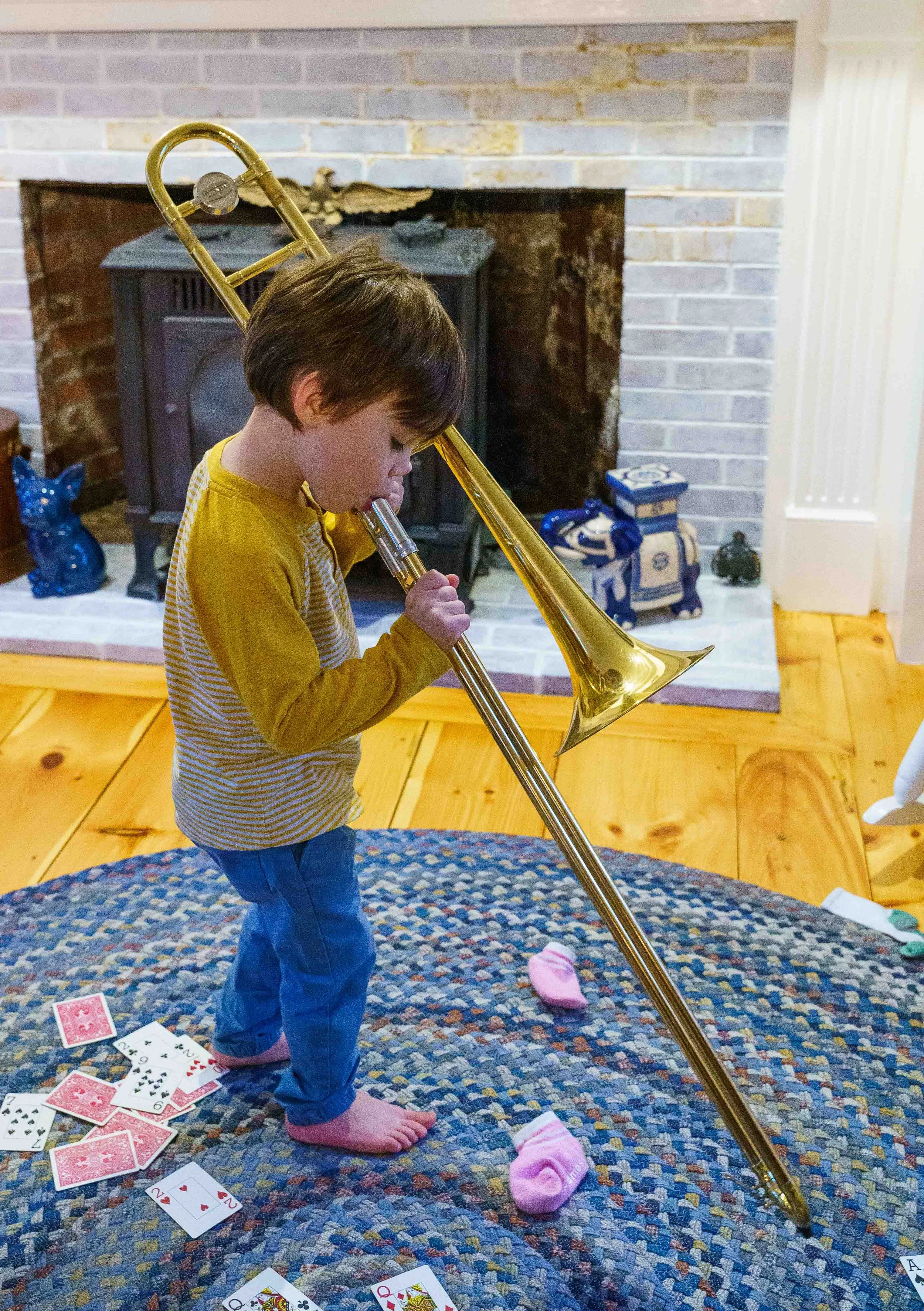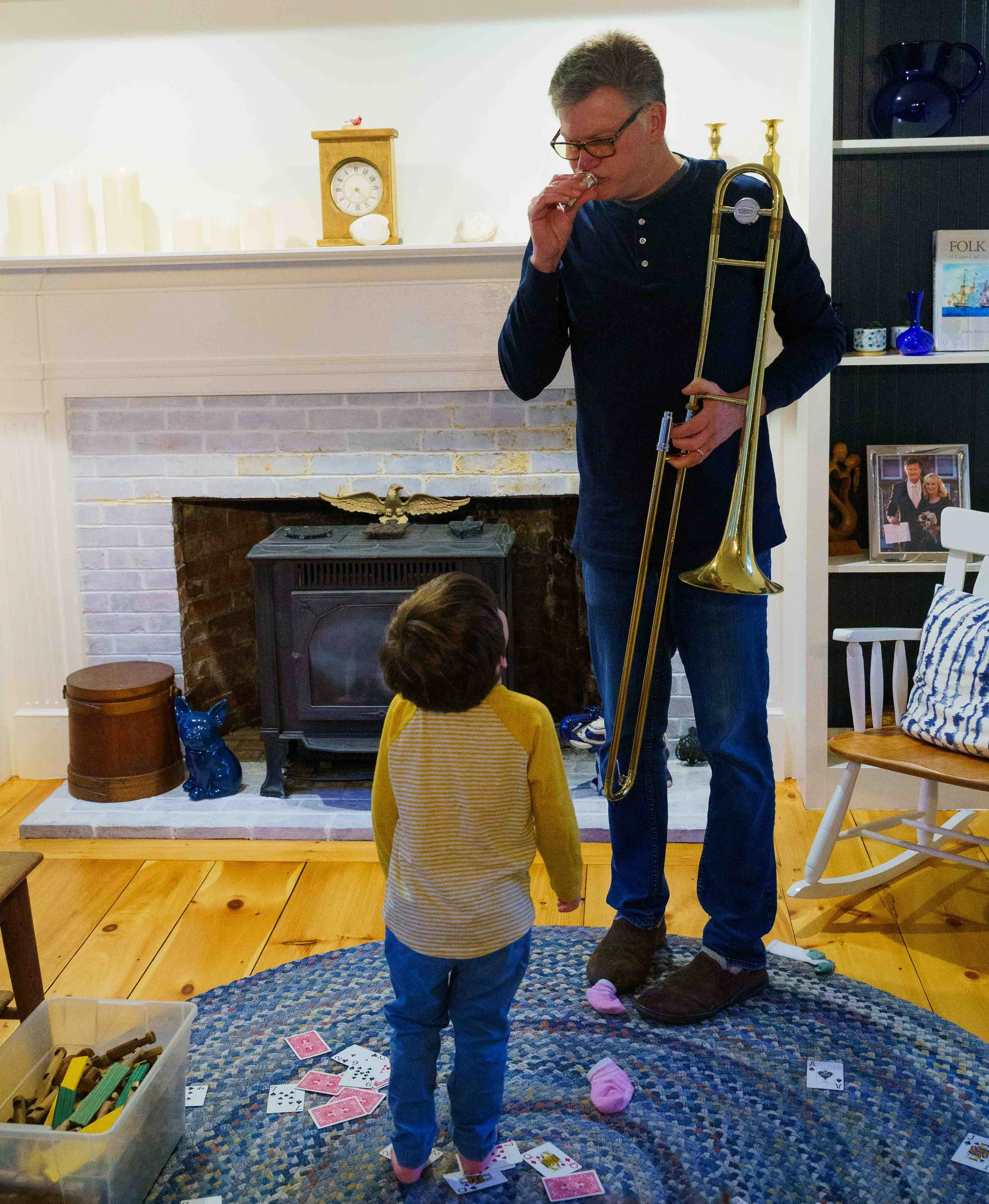 Celebrating Bud, eating good food, playing the trombone, having some laughs, and trying not to break anything at Nana and Pop Pop’s!