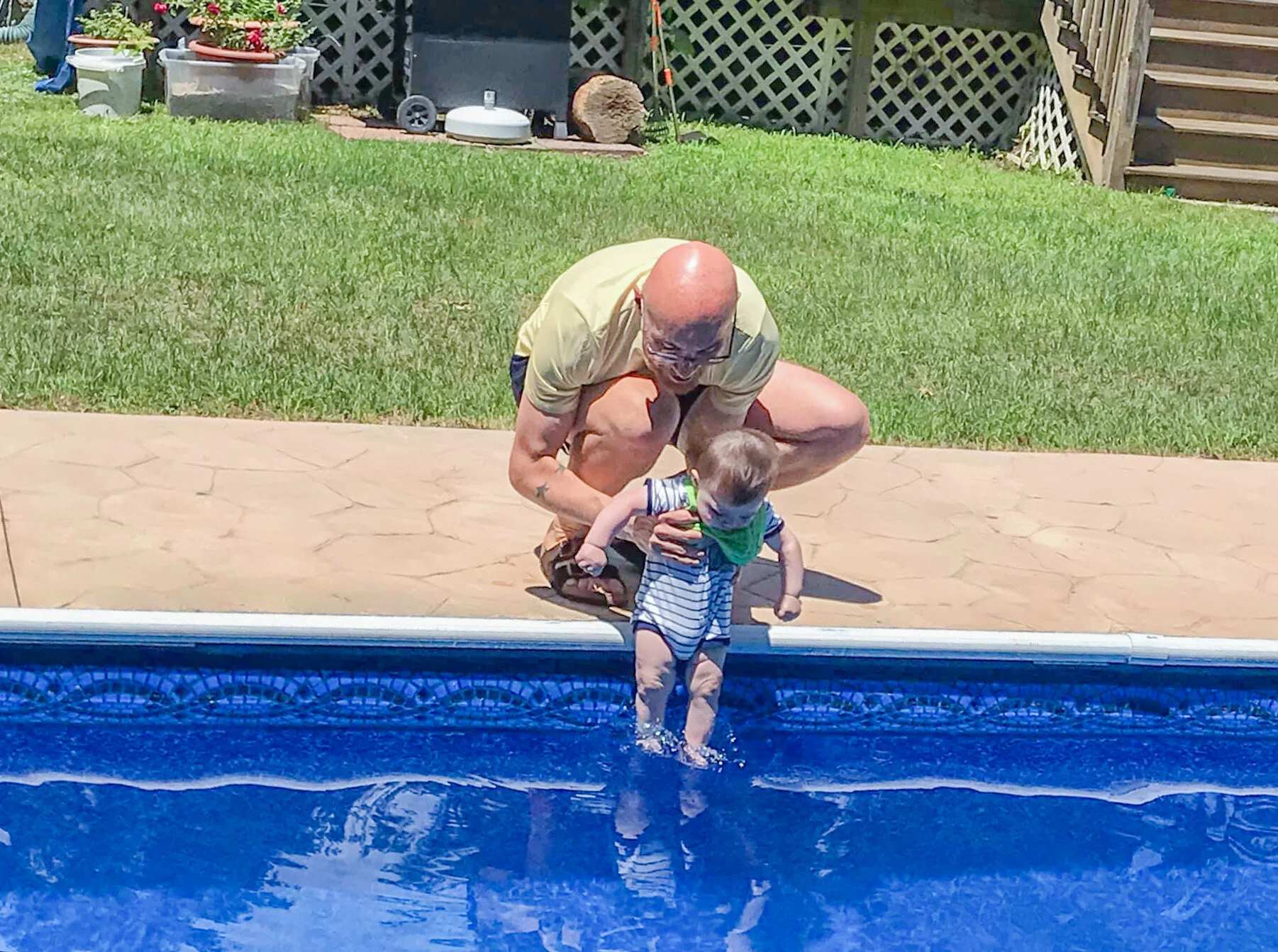 River also impressed us this past weekend. Bud and I committed to three social visits in one day, starting with breakfast with Grandma and Grandpa at 7am. River was cheerful sitting on our laps while we ate breakfast outside on picnic tables. He happily played with the new toy Grandma and Grandpa had brought for him and seemed to be soaking in his surroundings. Next, we drove to a cookout in North Smithfield at Pop Pop and Nana’s house where River was to meet some important people. He very calmly accepted audience with all of his new family, playing with his toys on his blanket, but seeming to also be taking in each new face- his Great Aunt Mary and Great Uncle Dave, and his cousins Charlie, Pete, and Hillarie. Once it was time for his next nap, it was time to drive home.