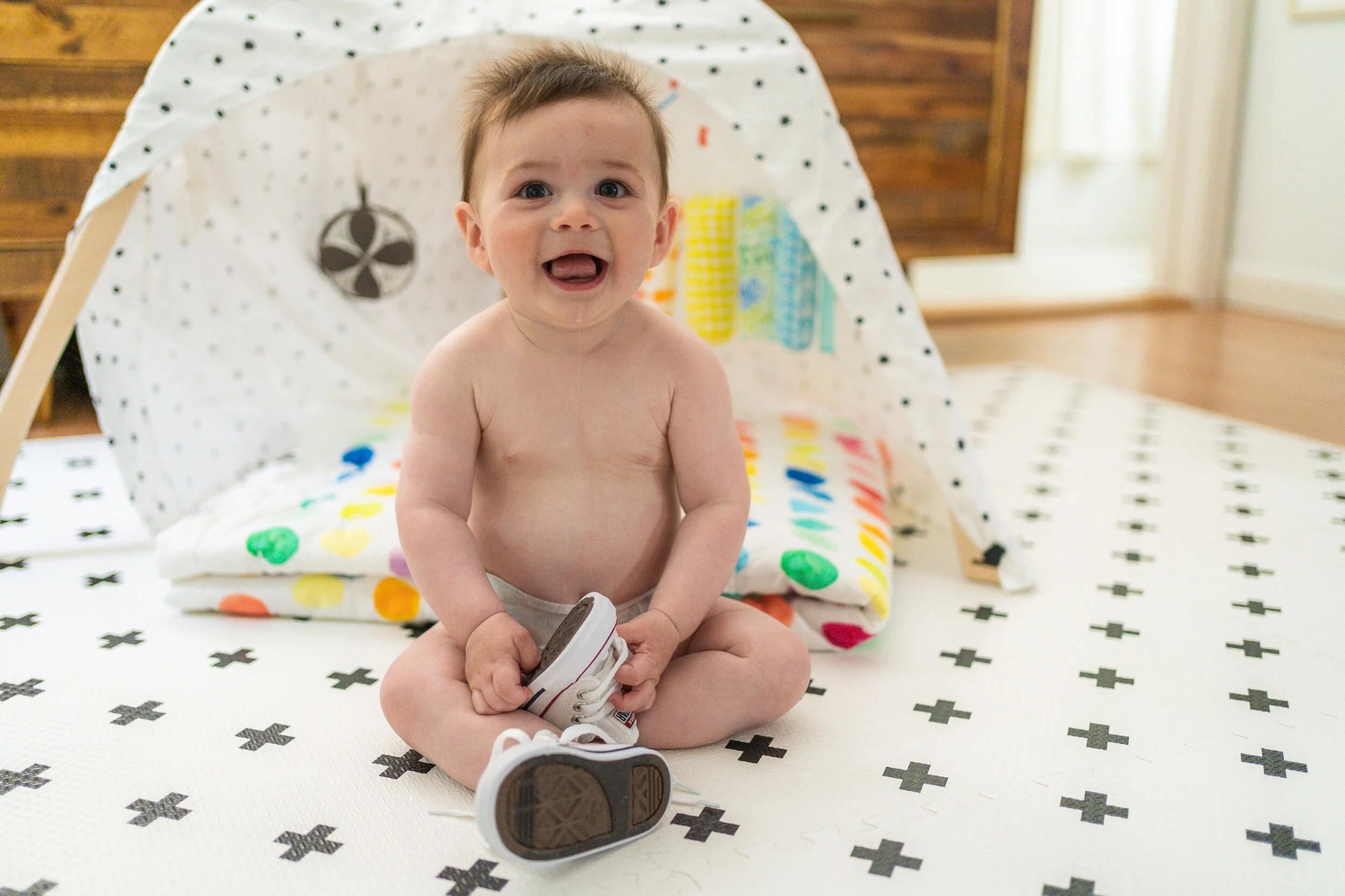 The past few weeks have just been a whirlwind of accomplishments. One day, River could almost sit up with assistance, the next day, he was pushing himself up and staying that way like he’d been doing it since he was born. He gets around with facility by log rolling and/or throwing his body weight forward on his stomach. He likes to practice the crawling position, while Bud and I watch on with bated breath, cameras in hand, only to flop onto his tummy the next moment. We feel that crawling is just around the corner, though.