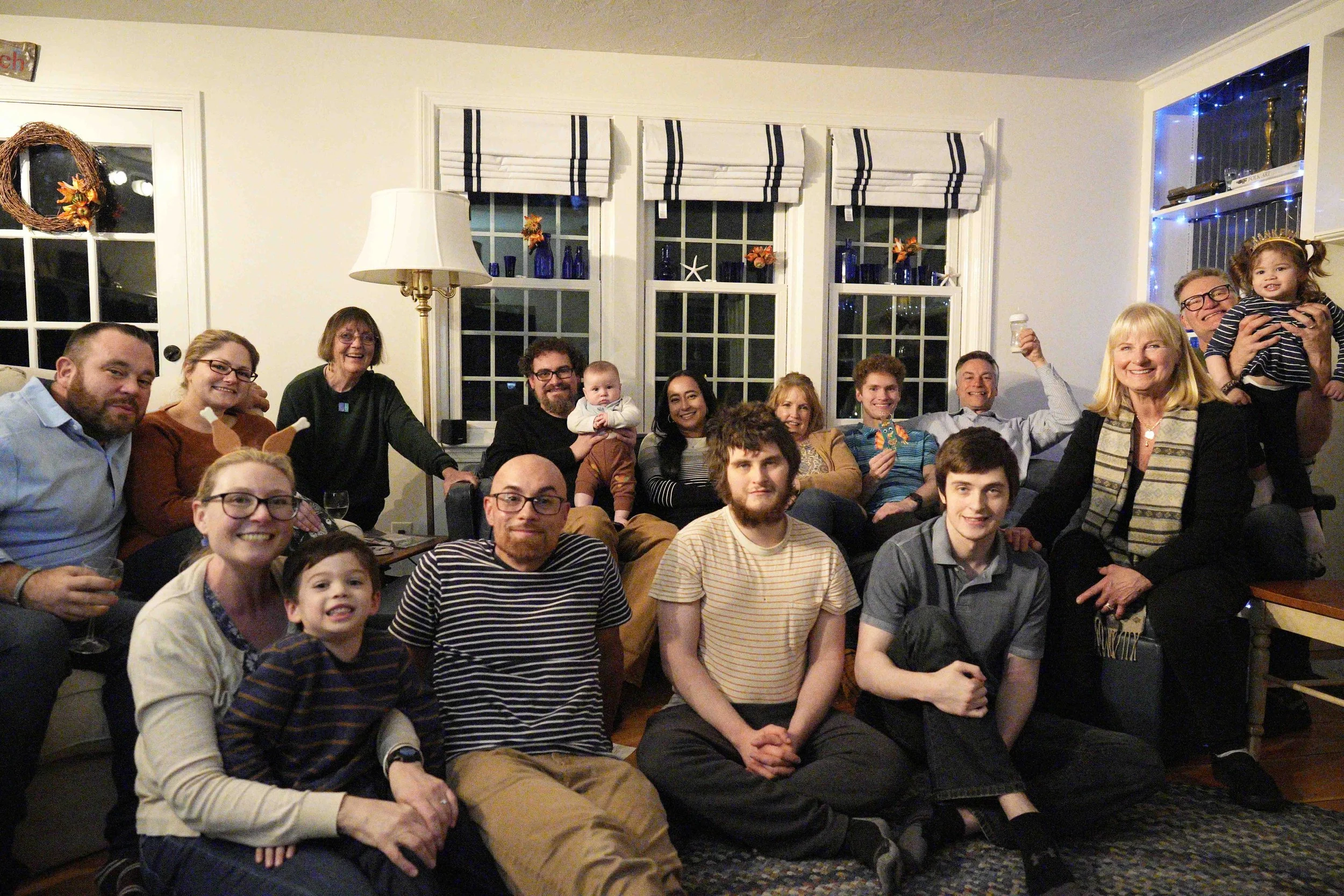 Back, left to right (for posterity)- Greg Ward, Hillarie (Mills) Ward, (Aunt) Marca Daley, Pete Mills, Jack Silveira, Leishmey V., (Aunt) Mary Mills, Charlie Mills, (Uncle) Dave Mills, Alfred Mills, Eleanor Silveira Front, left to right- Aly (Mills) Silveira, River Silveira, Bud Silveira, Will K. James K. Odile Mills